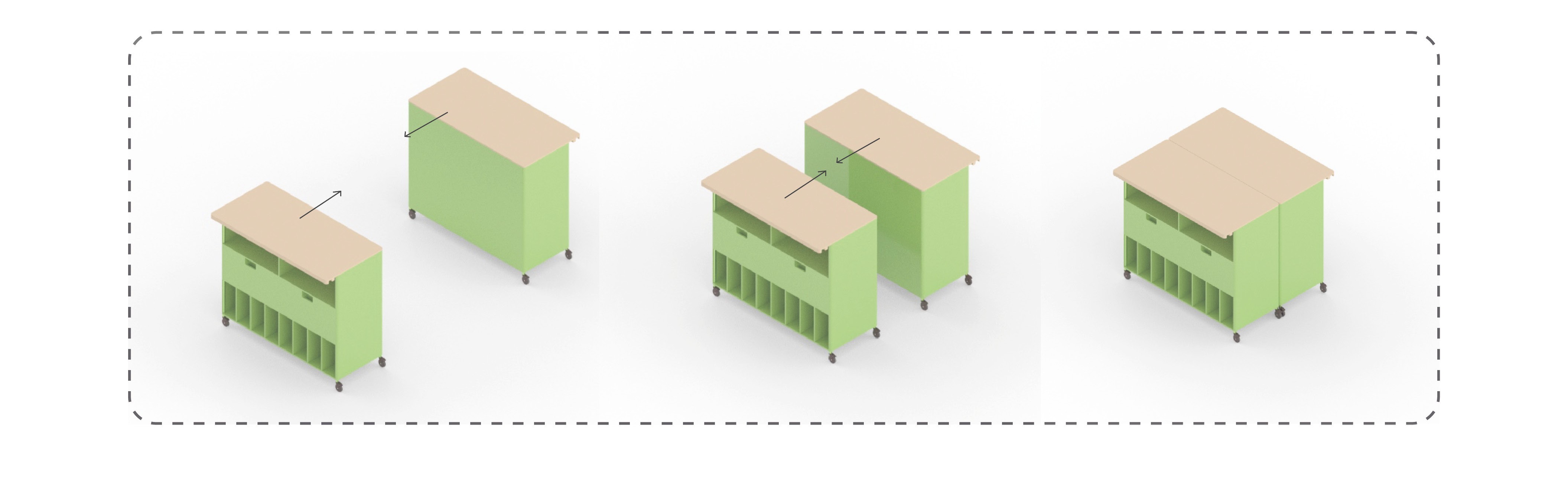 School makerspaces often limit students’ freedom to move with their materials. Stow solves this with a kid-friendly mobile storage unit that lets them carry tools and work anywhere. It encourages flexibility, collaboration, and active participation—supporting the dynamic, hands-on nature of learning. By making movement part of the process, it helps students feel greater creativity.